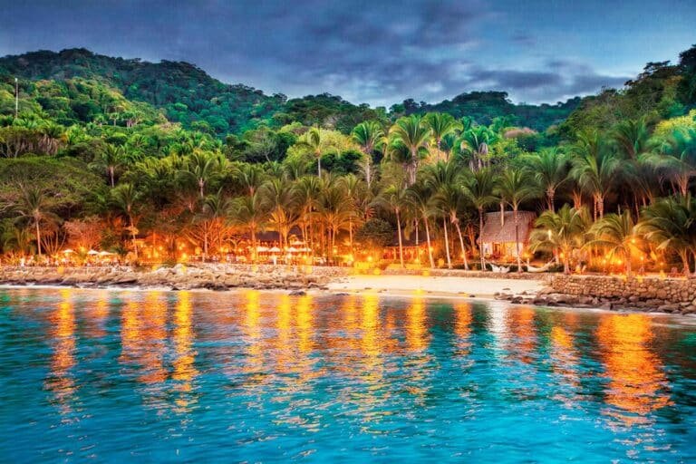 Tu viaje comienza con un crucero escénico al atardecer a través de la Bahía de Banderas, rumbo a la apartada y encantadora Playa Las Caletas, donde se realiza este exclusivo tour nocturno en Puerto Vallarta. Al llegar, te recibirá un entorno mágico con antorchas, fuego, tambores, y el murmullo del mar bajo el cielo estrellado.